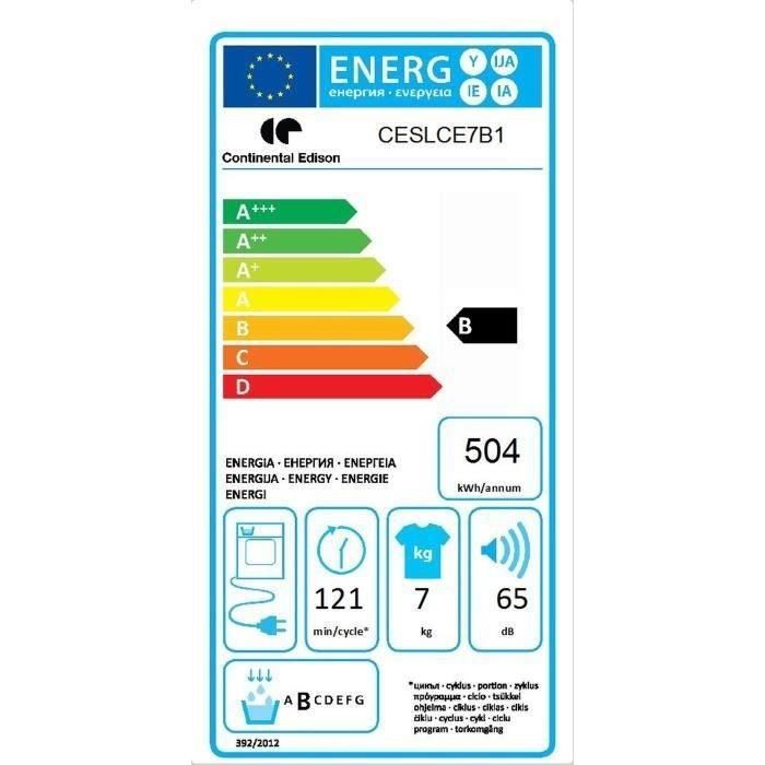 | Nom du produit | CONTINENTAL EDISON CESLCE7B1 – Sèche linge frontal |