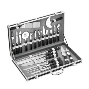0 Reviews- 1 couteau jambon + 1 spatule + 1 éminceur + 1 couteau filet de sole + 1 fourchette deux dents + 1 co, uteau désosser + 1 spatule plate + 2 couteaux office + 1 couteau tomate + 1 berceuse + 1 couteau pam, plemousse + 1 gouge + 1 déco melon + 1 boule melon + 1 vide pomme + 1 coquilleur à beurre + 1 roulet, te pizza + 1 canneleur + 1 zesteur + 1 éplucheur + 1 roulette à pâtisserie + 1 aiguille à brider